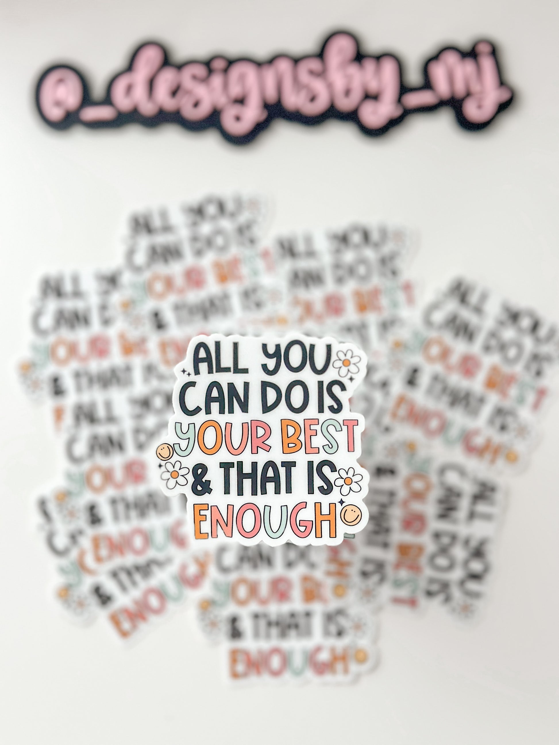 Boost your spirits with our durable waterproof sticker featuring the uplifting message "All You Can Do Is Your Best And That Is Enough." Perfect for water bottles, laptops, journals, and any hard surfaces, this high-quality vinyl sticker is built to last and inspire.
