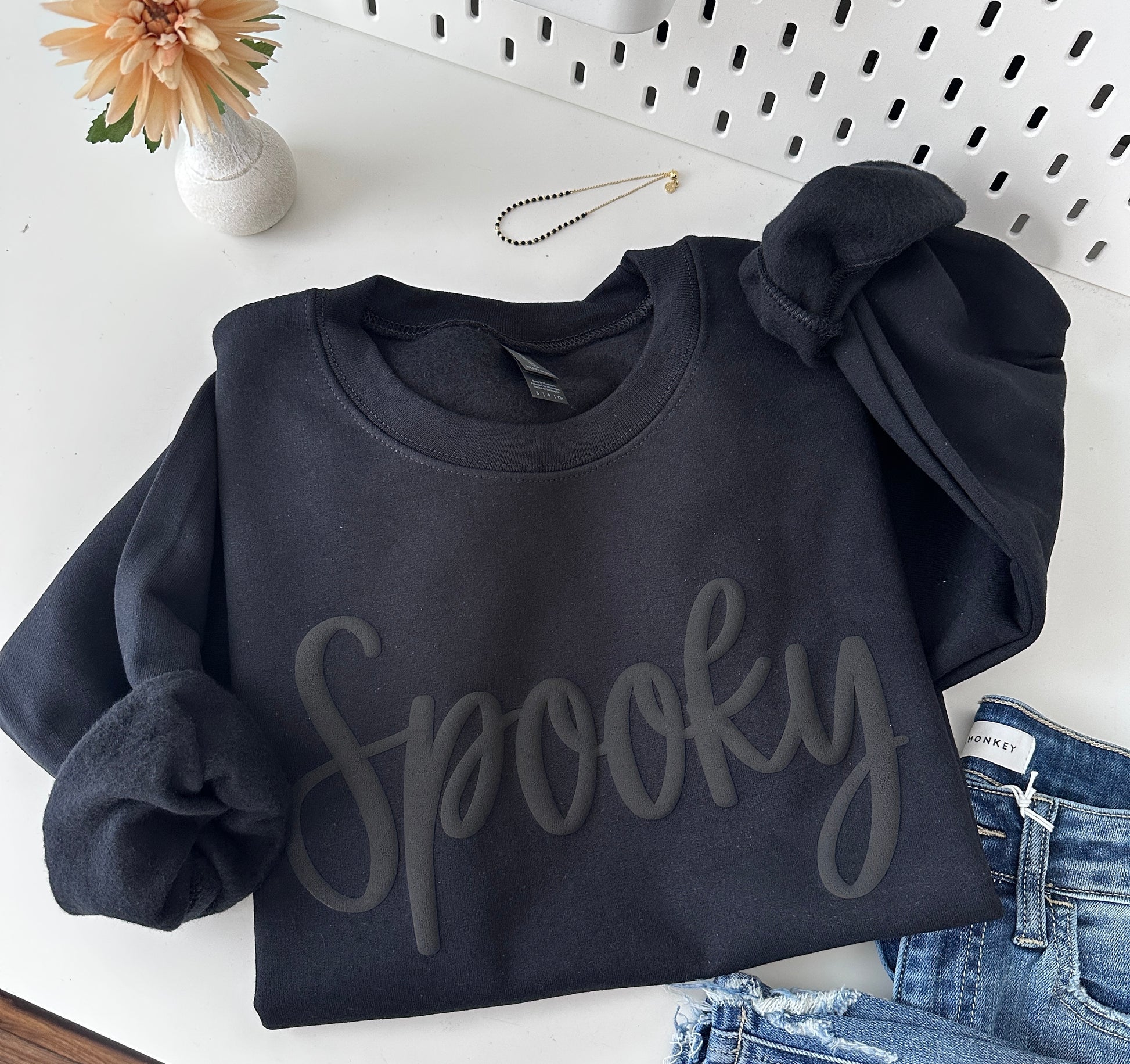 Halloween Puff Sweatshirt Spooky Sweatshirt Women's Cozy Black shirt embossed